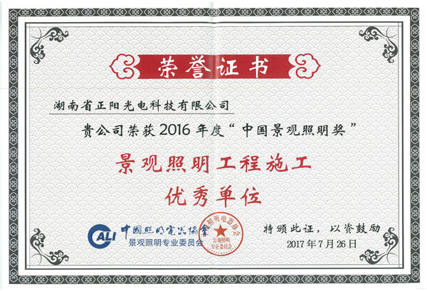 湖南省正陽光電科技有限公司是一家從事亮化工程及大型燈光藝術(shù)的設(shè)計、制作、安裝和維護于一體的專業(yè)化公司。公司資質(zhì)齊全、管理嚴謹、技術(shù)先進、實力雄厚,取得了城市及道路照明工程專業(yè)承包壹級資質(zhì)、照明工程設(shè)計專項甲級資質(zhì)、機電工程施工總承包貳級資質(zhì)、施工勞務(wù)等資質(zhì)、國家高新技術(shù)企業(yè)、國家“重質(zhì)量·守誠信”示范企業(yè)。